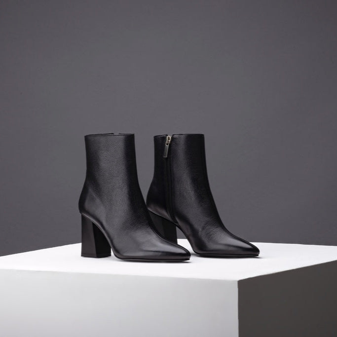 Bota piel negro liso, cierre al costado, tacón 8 cm